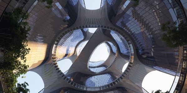 ZHA和CABR設計的泰康金融中心,基于武漢作為信息和交通網絡中心樞紐的地位,它由漢口濱江商務區城市總體規劃中三座相互連接的建筑的環形組成,將東面的長江公園和濕地以及南面的城市新中央公園整合在一起。這些新的公共公園是武漢海綿城市計劃的組成部分,該計劃使雨水的自然儲存和滲透,以減緩其釋放,幫助防洪,同時促進其再利用。