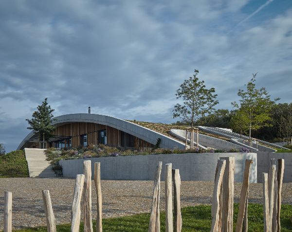 古爾道酒廠體現了對可持續發展的承諾,與自然景觀和諧地融合,同時最大限度地減少對環境的影響。整個建筑被一個弧形的廣泛的綠色屋頂所籠罩,使其與周圍環境融為一體。隨著植被的茂盛,酒莊在遠處的景色中幾乎看不到了,保持了景觀的視覺和諧。