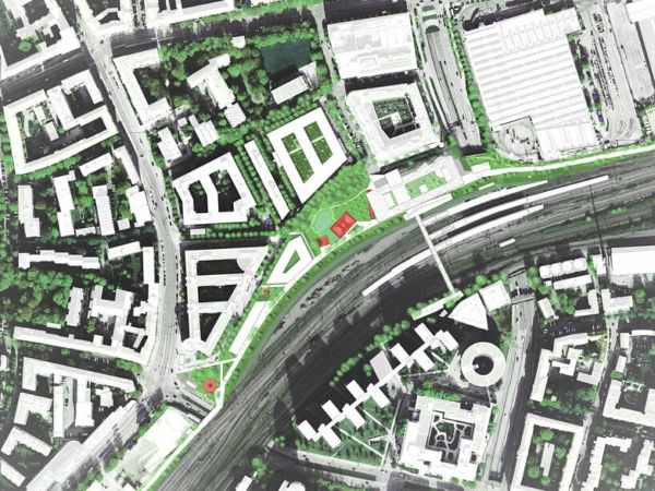 新總部采用高架結(jié)構(gòu),旨在將可進(jìn)入的空間擴(kuò)展到內(nèi)部,而其透明的輪廓允許與周圍環(huán)境無(wú)縫融合。該建筑是Leuchtenbergring地鐵站和即將到來(lái)的中央社區(qū)花園之間的連接點(diǎn),由一個(gè)人行S-Bahn交叉口提供便利。這個(gè)連接點(diǎn)通向一個(gè)中央廣場(chǎng),被設(shè)計(jì)為當(dāng)?shù)厣鐓^(qū)的一個(gè)誘人的“城市客廳”。巧妙的是,設(shè)計(jì)利用廣場(chǎng)下面的空間來(lái)容納主餐廳、美食區(qū)、銀行的會(huì)議中心和后勤功能等設(shè)施,方便地面的使用。這樣一來(lái),該結(jié)構(gòu)毫不費(fèi)力地為城市增加了公共空間,而又不影響其自身的要求。