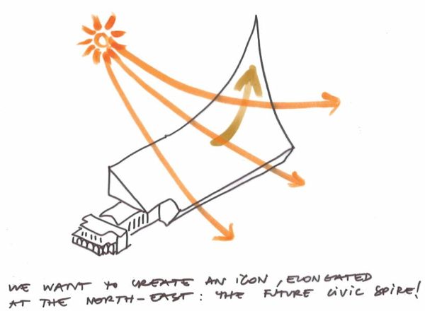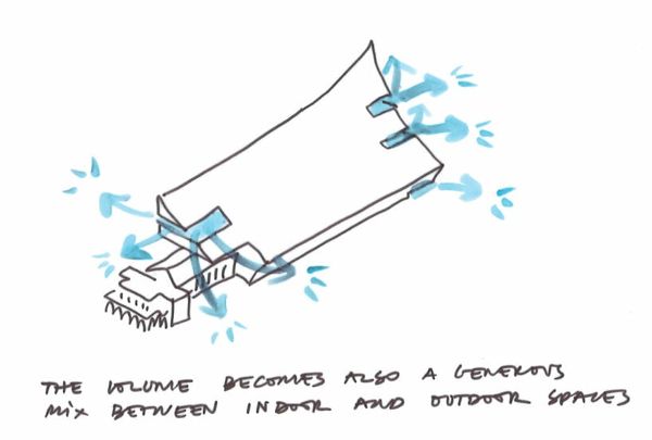 Phive項(xiàng)目旨在通過充滿活力的設(shè)計(jì)促進(jìn)人與人之間的聯(lián)系,從而解決社會問題。為了實(shí)現(xiàn)這一目標(biāo),建筑師將重點(diǎn)放在最大限度地提高市政廳附近中央沿海道路的亮度和開放性上。建筑體量的設(shè)計(jì)遵循太陽的軌跡,確保濱海大道全年保持充足的光照。此外,設(shè)計(jì)還與場地的地理環(huán)境融為一體,充分利用了陽光、風(fēng)和氣候等自然元素的優(yōu)勢。南立面傾斜彎曲,創(chuàng)造出一個(gè)寬敞的公共空間,成為城市的新焦點(diǎn)。外墻由數(shù)百塊折疊板組成,既能隔熱又能濾光,營造出一種內(nèi)外兼修的詩意氛圍。棋盤格狀的屋頂使廣場看起來像一個(gè)層疊的露天劇場,加強(qiáng)了與周圍環(huán)境的互動。
