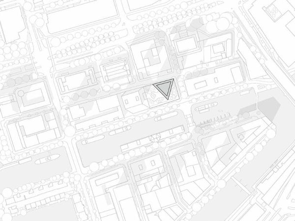 從各個角度都能看到這座塔樓的三角形設計,它為 Wijnhaven 區注入了新的活力。“超新星公館”大廈從戰略上激活了Wijnhaven街的一角,在Oude Haven和Markthal 之間建立了聯系,并將周邊街道與“沉思”大樓連接起來。從兩條街交匯處是大樓的入口大堂,歡迎來自城市兩邊的居民。