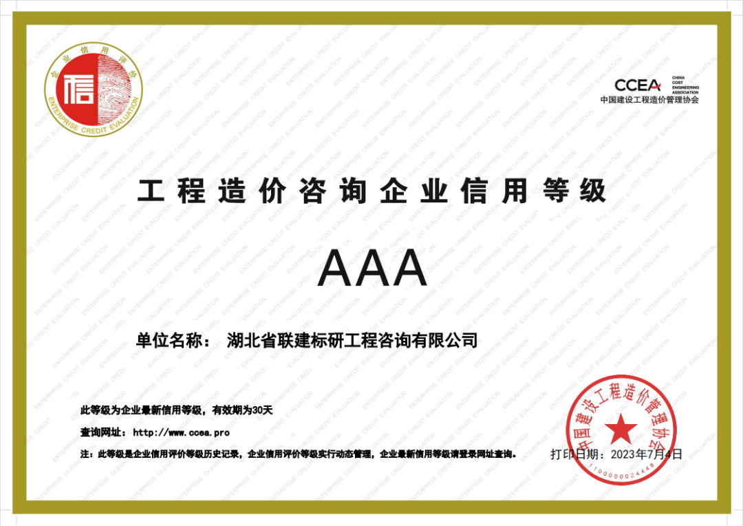 行業(yè)最高 | 省建筑設(shè)計院·聯(lián)建標研公司獲得工程造價咨詢企業(yè)AAA信用等級