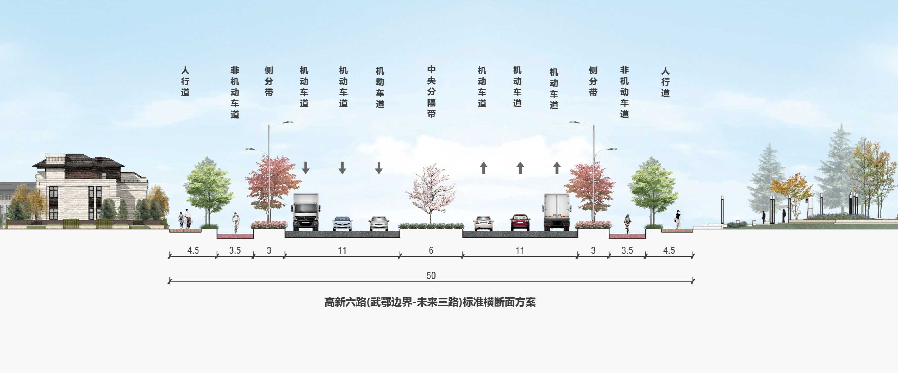 高新六路(武鄂邊界-未來三路)位于鄂州市紅蓮湖大數據云計算產業園區南區,規劃為東西向城市主干路,西起于望湖五路,沿線與望湖六路、智慧二路、望湖七路、望湖八路相交,東止于未來三路,全長1553.618m,設計速度50km/h,規劃紅線寬為50m,雙向六車道。工程投資約1.35億元。