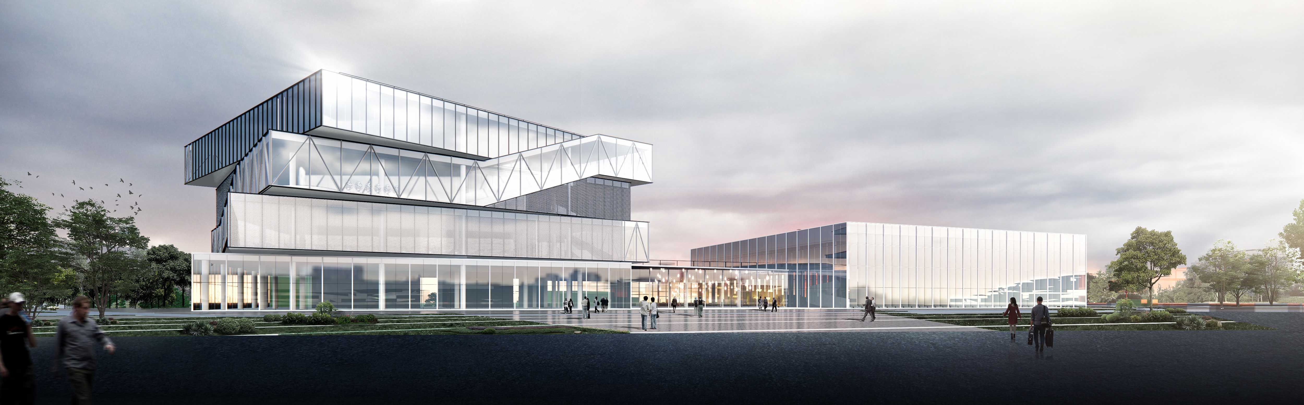 項目用地面積21541.18?㎡,總建筑面積17650.72?㎡,其中計容建筑面積約13058.54?㎡,不計容建筑面積約4592.18 ?㎡。項目主要由展廳、辦事大廳、辦公、會議、多功能廳、餐廳等功能組成。