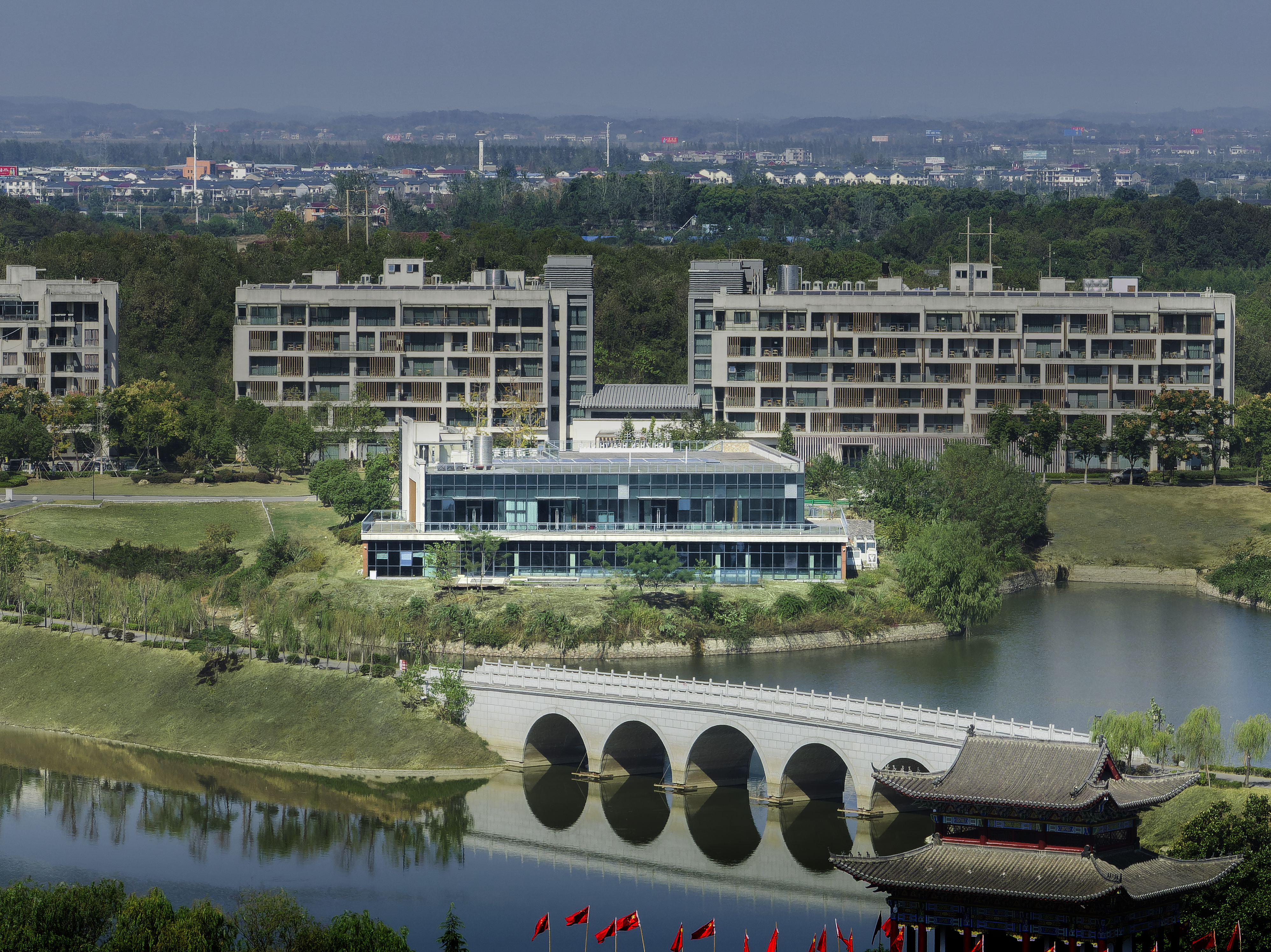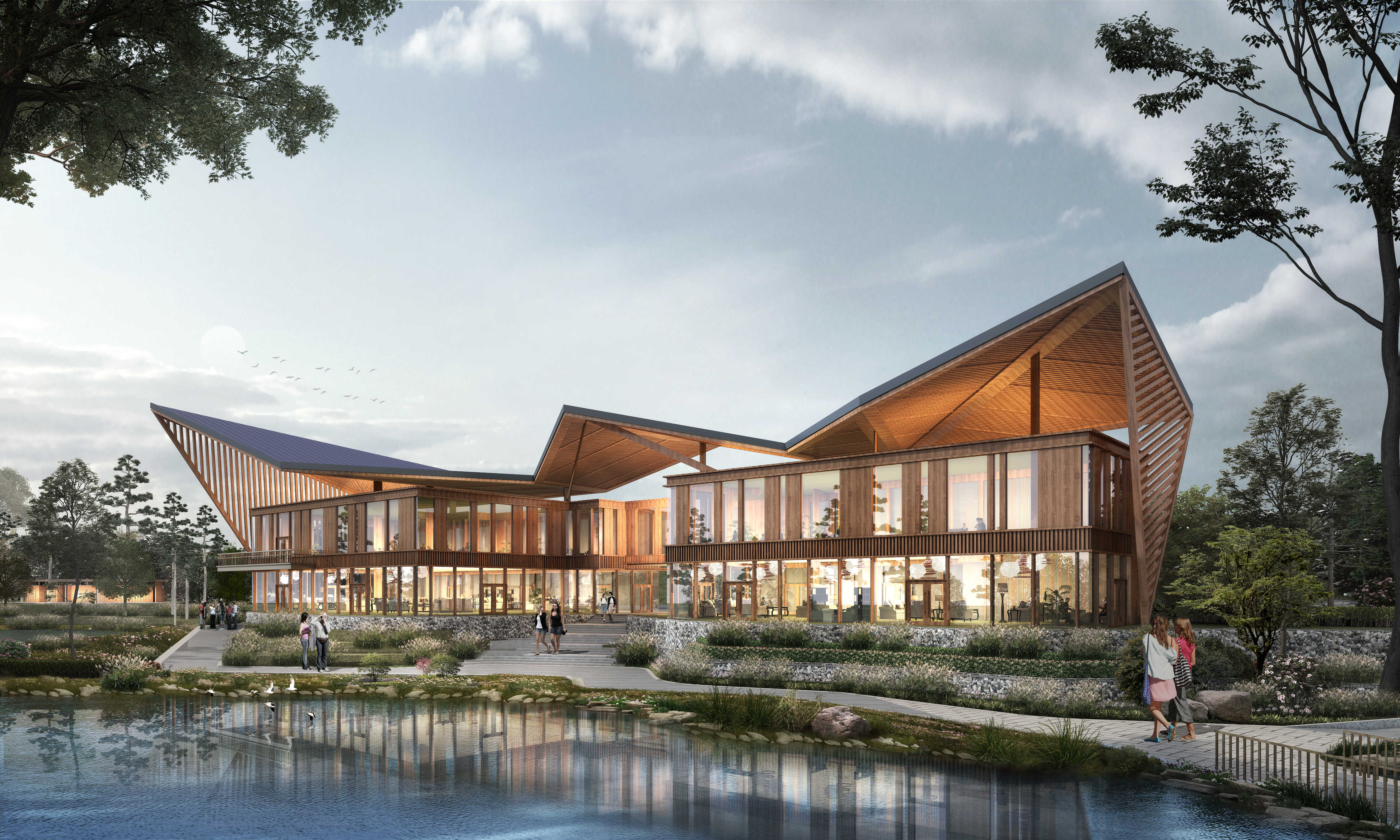 重新規劃設計后的李時珍健康論壇項目-國際會議中心是一個位于蘄春赤龍湖國家濕地公園內的環境優美,風景秀麗的度假酒店配套建筑,整個項目包括東壁閣酒店,國際會議中心,員工宿舍,赤龍湖管委會辦公樓,以及34棟半島別墅組成,臨近酒店的還有同期進行改造的明清建筑特色的影視城。